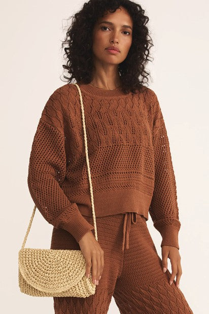Keara Woven Crossbody Bag - Brown
