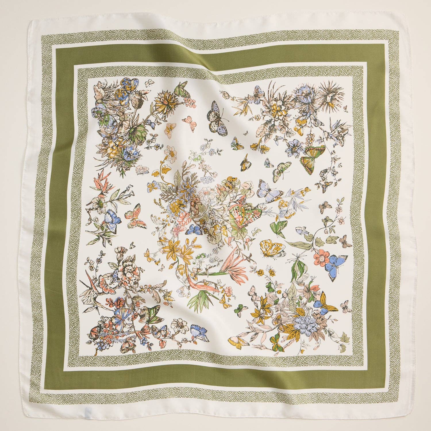 Floral Butterfly Silk Texture Square Scarf - Olive
