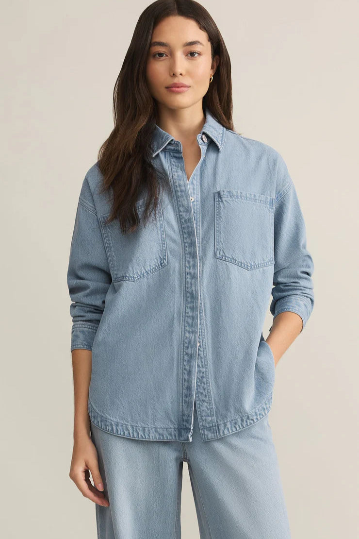 All Day Luxe Soft Denim LJacket - Light Vintage Indigo