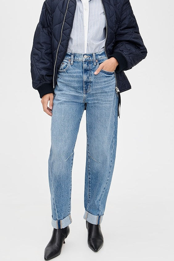 The Venice Barrel Jean combines a stylish barrel cut with a neatly finished cuff, offering a contemporary twist on classic denim. Designed for comfort and versatility, these jeans provide a flattering silhouette while the cuff adds a polished detail perfect for both casual and dressed-up looks. Elevate your wardrobe with a pair that effortlessly balances trend and everyday wearability.