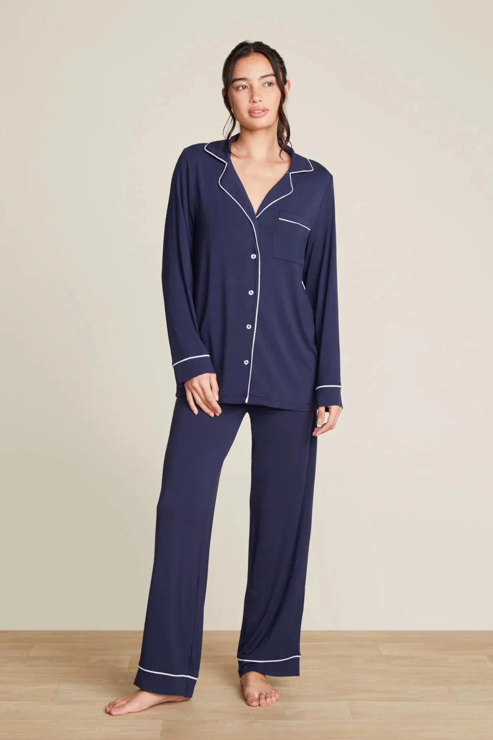 Luxe Milk Jersey Piped Pajama Set - Indigo