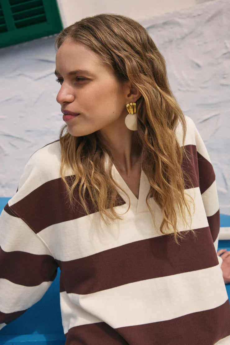 Designed in brushed fleece for a lived-in feel, this relaxed collared pullover features a hi-low hem and drop shoulders for a comfy, casual silhouette. Lightweight enough for layering, it's one you'll reach for all year.