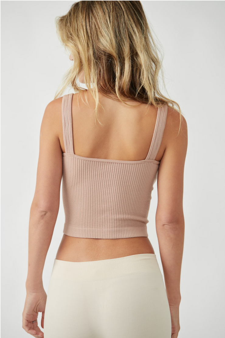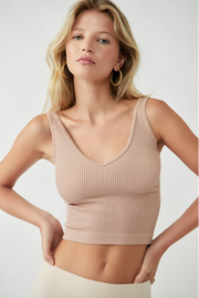 A perfect blend of a bra and cami, this brami is crafted from ultra-soft ribbed fabric for all-day comfort. Designed with a flattering V-neckline and a sleek, second-skin fit, it offers the perfect balance of stretch and support. The cropped silhouette makes it a versatile layering essential or a stylish standalone piece.