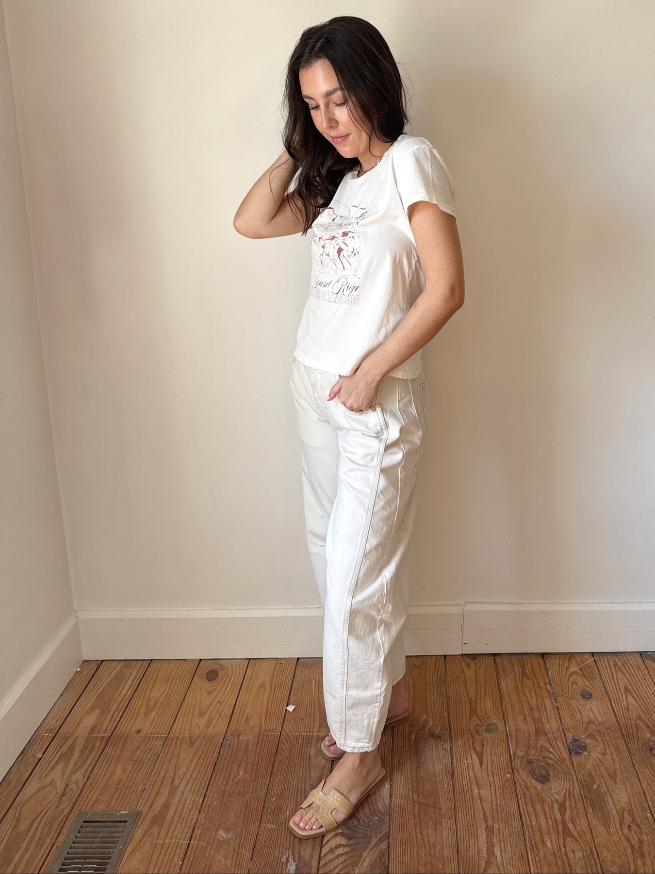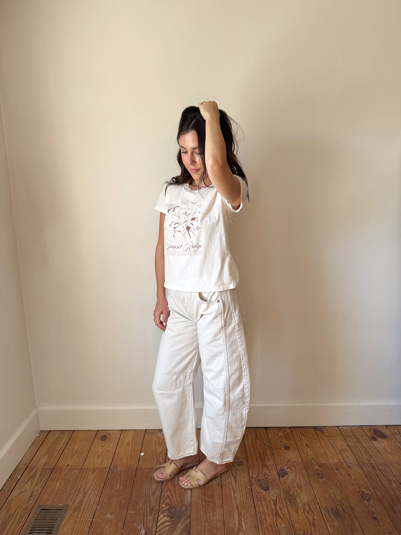 The Sunset Ridge tee is the perfect western graphic.  The cropped fit is the perfect length.  Layer her under your favorite sweater/blazer/jacket or pair with your favorite denim skirt/shorts with a belt and cowboy boots to wear to a concert this summer!