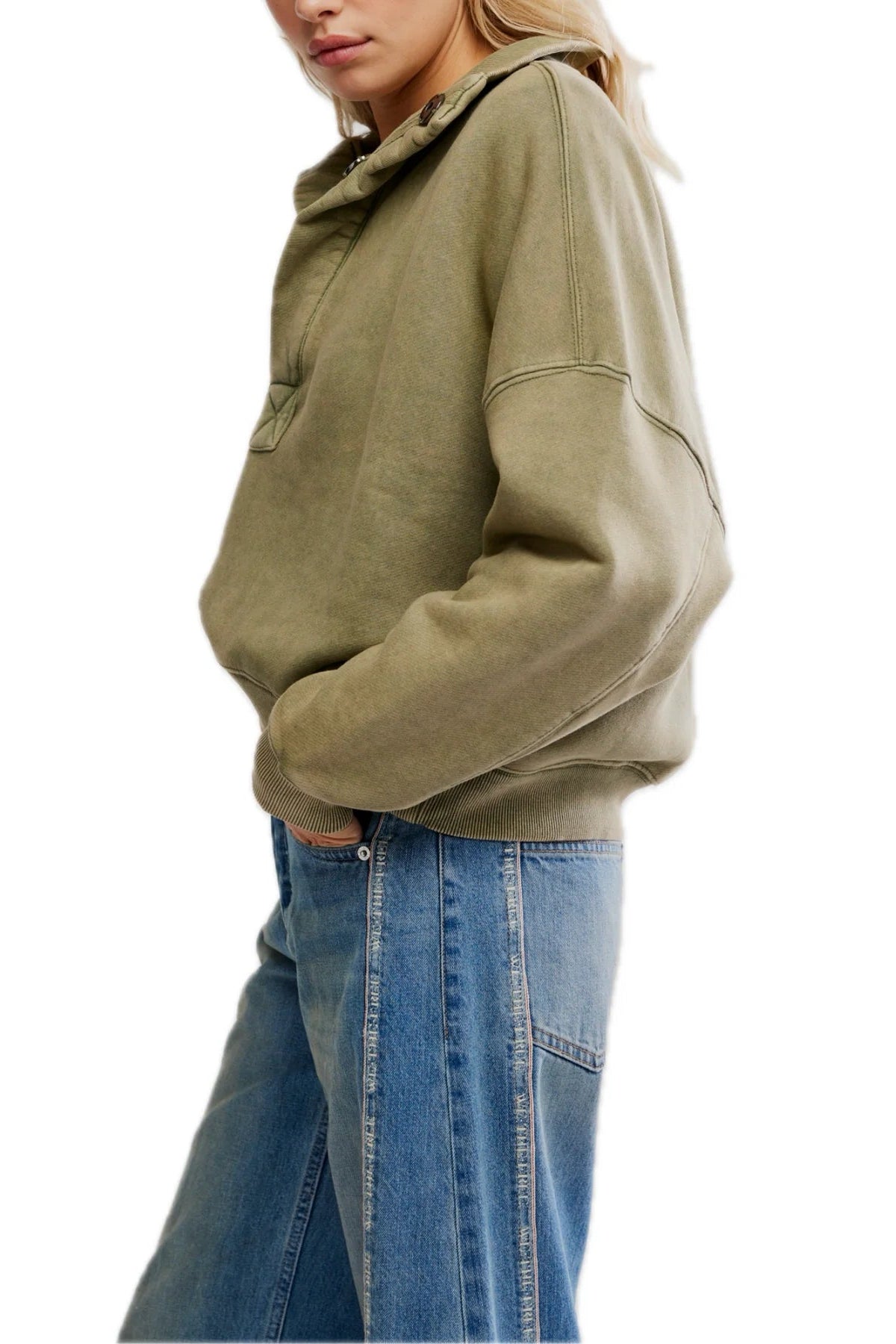 So cozy and essential, this wear-everywhere pullover features a funnel neck design with quarter-button detail and ribbed trimming for added dimension.