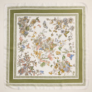Floral Butterfly Silk Texture Square Scarf - Olive