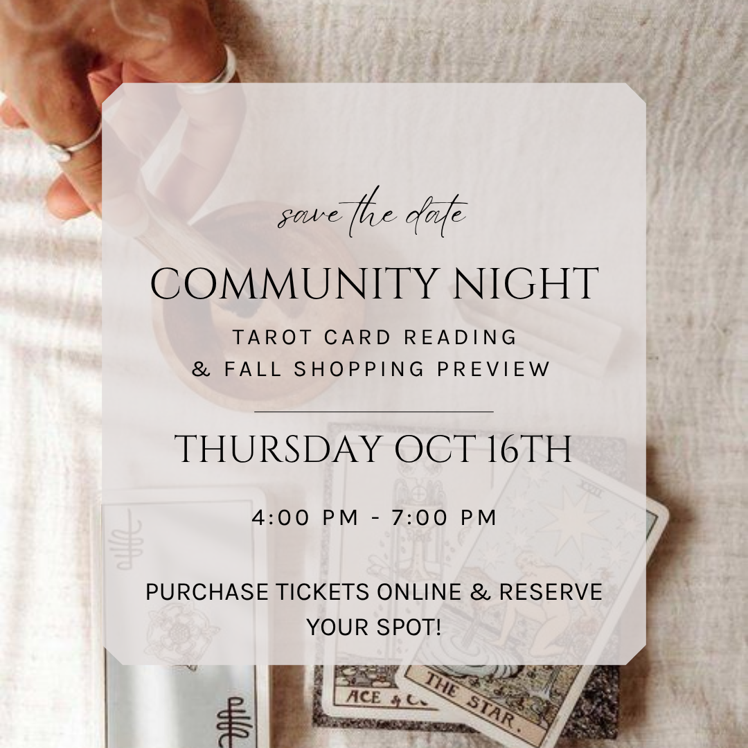 *Ticket/admission also include light snacks and drinks.  Grab your girls or come solo for a festive night of food, friends & witchy fun.  Optional shopping will also be available and includes our latest collection drop!